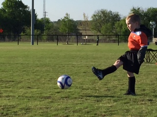 max's team was thunder and he liked to kick the ball hard, but not very accurately. his hard kicks did get him a few goals though!